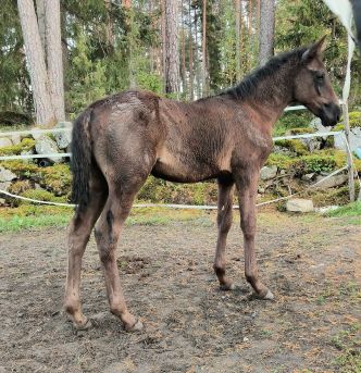 Isä huippuperiyttäjä ja aikansa superkilpahevonen Going Kronos, josta on enää saatavilla vain harvoja varsoja! Sen jälkeläisissä (327kpl) Ruotsissa on peräti 29 kruunumiljonääriä, mm. Dante Boko 09,2a 9.329.061kr 27 voittoa ja Hevin Boko 09,6a 4.527.000kr. Emästä Embrace d'Am 17,0kp 18.330€, Rim Bay Lion 15,2ake 7.850€ ja Rim Bay Weasel 16,0ake (4-v.) 2.730€. Palkittu näyttelyssä II+ - palkinnolla, erittäin kaunis ja mukavan rauhallinen varsa. Irtopalakuvattu ilman huomauttamista, raspattu ja sudenhampaat poistettu.